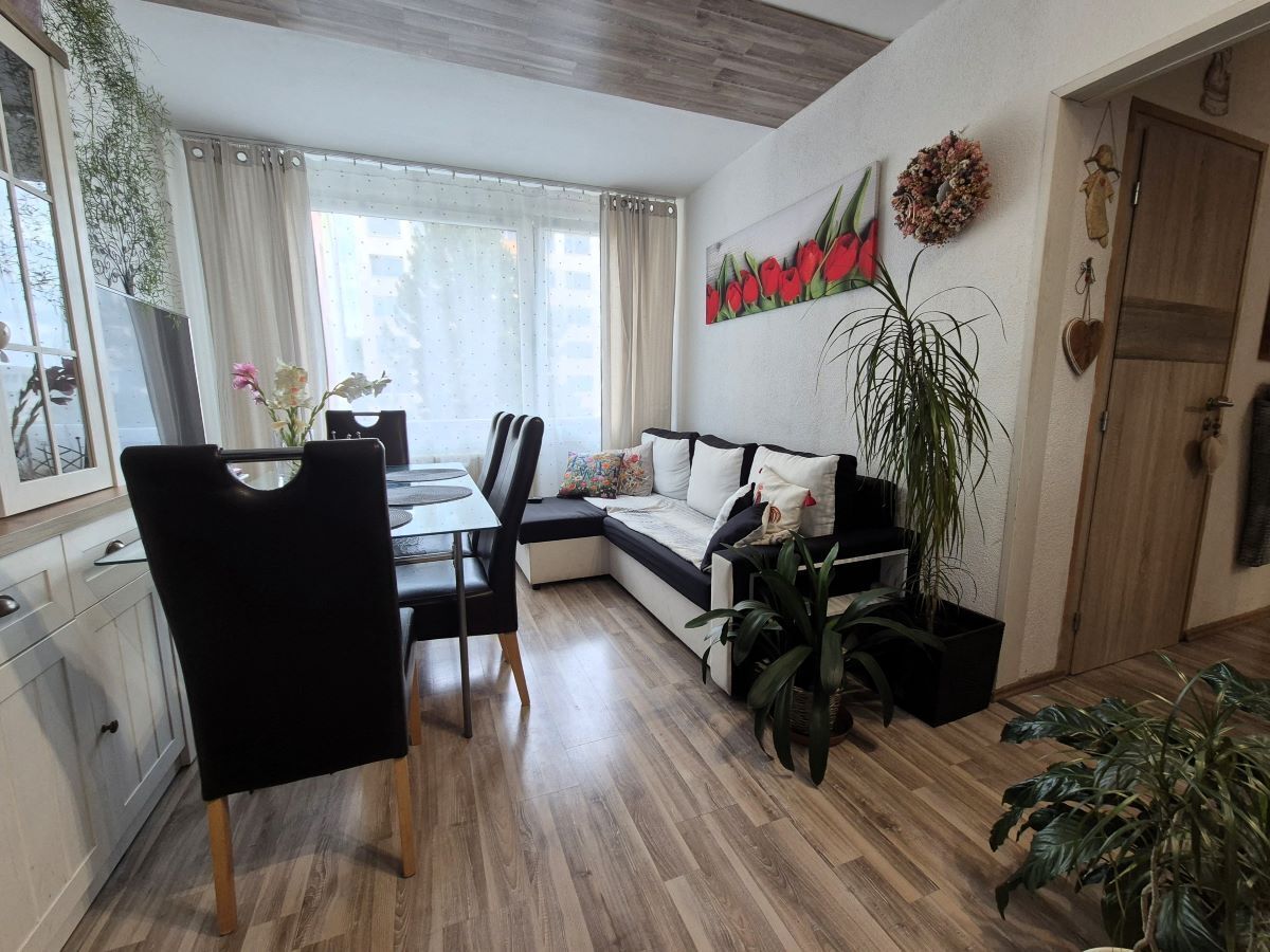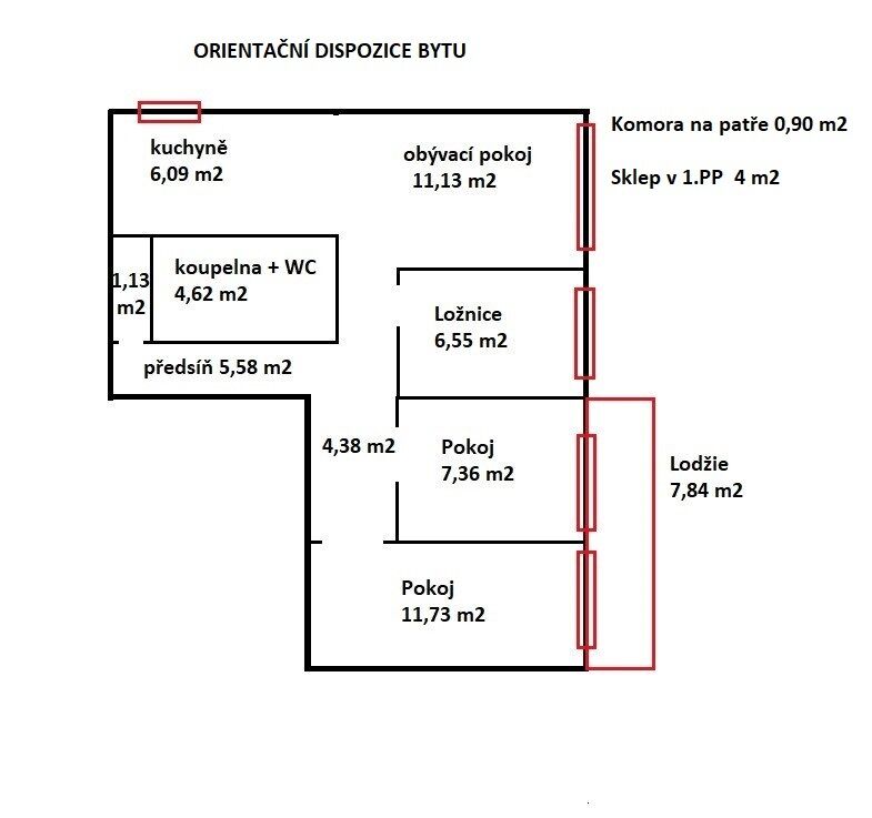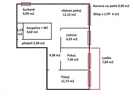Byt 4+1 s komorou a lodžií v Hořovicích se nachází v 3. NP panelového domu (po celkové revitalizaci), ul. Višňová, okrajové části Hořovic, v blízkosti zámeckého parku. Jedná se původně o byt s dispozicí 3+1, který byl v r. 2008 upraven na dispozici 4+1 s komorou v bytě (65,49 m2) a lodžií (6,60 m2) + další komorou na patře (0,92 m2) a ještě sklepem (4 m2) umístěný v 1.PP bytového domu, který byl také postupně zmodernizován (výtah, schodiště, střecha, bezbariérový vstup atd.) Byt má plastová okna, orientovaná v kuchyni na SZ a ostatní pokoje včetně lodžie na SV, které zajišťují příjemné prosvětlení celého bytu. Stavební úpravou bytu vznikla praktická dispozice 3 ložnic se samostatnými vstupy a obývacího prostoru propojeného s kuchyní, bytové jádro bylo upraveno na koupelnu s toaletou a samostatnou menší komoru. Úložný prostor byl vyřešen vestavěnou skříní v chodbě.