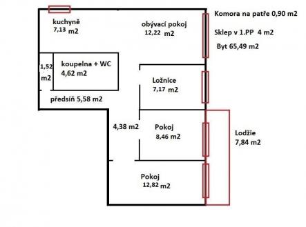 Byt 4+1 s komorou a lodžií v Hořovicích se nachází v 3. NP panelového domu (po celkové revitalizaci), ul. Višňová, okrajové části Hořovic, v blízkosti zámeckého parku. Jedná se původně o byt s dispozicí 3+1, který byl v r. 2008 upraven na dispozici 4+1 s komorou v bytě (65,49 m2) a lodžií (6,60 m2) + další komorou na patře (0,92 m2) a ještě sklepem (4 m2) umístěný v 1.PP bytového domu, který byl také postupně zmodernizován (výtah, schodiště, střecha, bezbariérový vstup atd.) Byt má plastová okna, orientovaná v kuchyni na SZ a ostatní pokoje včetně lodžie na SV, které zajišťují příjemné prosvětlení celého bytu. Stavební úpravou bytu vznikla praktická dispozice 3 ložnic se samostatnými vstupy a obývacího prostoru propojeného s kuchyní, bytové jádro bylo upraveno na koupelnu s toaletou a samostatnou menší komoru. Úložný prostor byl vyřešen vestavěnou skříní v chodbě.