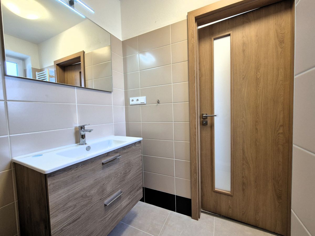 Zrekonstruovaný byt 2+1 se nachází v klidné ul. Gorkého, Příbram 4, ve 2. patře nízkopodlažního cihlového bytového domu. Výborná lokalita - klidná zóna s dostatečným parkovacím místem a v dosahu chůze kompl. občan. vybavenosti centra Staré a Nové Příbramě. Jedná se o nově, kompletně zrekonstruovaný byt 2+1 (57,50 m2) a 2 sklepy (9,4 m2), v r. 2025 byly nově provedeny rozvody elektřiny, odpadů, vodovodu, nové omítky i podlahové krytiny (vinyl a repasované dřevěné parkety), kompletní vybavení koupelny se sprchovým koutem a vestavěným umyvadlem včetně obkladů a dlažby, samostatná toaleta, interiérové dveře s obložkami, taktéž kuchyňská linka s digestoří, dřezem a osvětlením. Úložný prostor v bytě je vyřešen samostat. komorou a vestavěnými skříněmi v chodbě, mimo byt je možné využívat sklepní kóje (8,1 m2 + 1,3 m2). Světlost bytu zajišťují početná plastová okna na severní i jižní straně (viz. fotogalerie plán bytu). Dispozice: vstupní chodba do tvaru "L" 8 m2, komora 1,1 m2 , toaleta 1 m2, koupelna 3,5 m2, kuchyně 11 m2, pokoje 18,3 m2 + 14,6 m2. Udržované a čisté společné prostory v domě. Náklady na bydlení: 4.355,- Kč (FO 1137,- Kč a kompletní zálohy na služby - vodné, stočné, otop, výtah atd.)+ el. a net. Byt je připravený k okamžitému užívání. Koupě bytu vhodná jako investiční příležitost či k vlastnímu bydlení v příjemném prostředí.